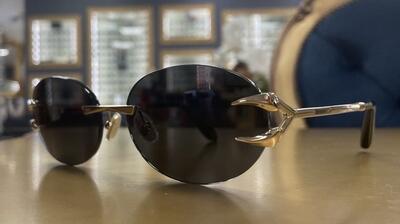 malá ukážka úzkých slnečných okuliarov, z ktorých je na výber: orámované, bezrámové, zlaté, ružovkasté, čierne klasiky…